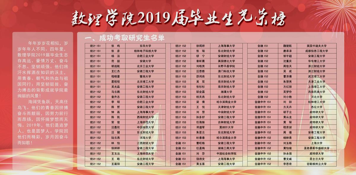 数理学院2019届毕业生光荣榜