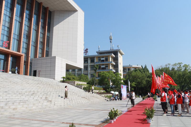 6月11日上午,天气晴朗,烈日炎炎,学校图书馆广场前党旗飘扬,气氛热烈。数理学院2019届毕业生党员在这里开展“筑梦有我·相约2049”与祖国同行毕业季倡议活动。活动得到了机械与汽车工程学院、纺织服装学院、艺术学院、计算机与信息学院、建筑工程学院毕业生党员的积极响应。