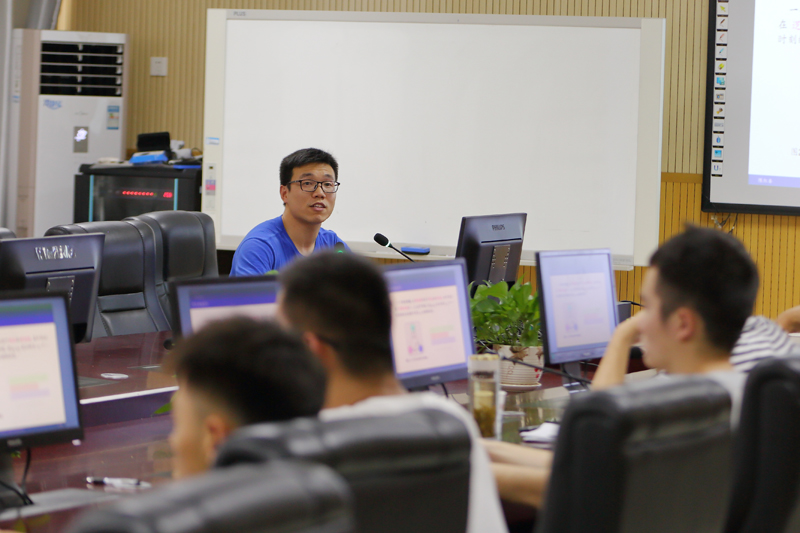 报告中,陈红委给出了布尔网络的概念及其研究背景,详细介绍了矩阵半张量积的基础概念及性质,并就如何利用矩阵半张量积将布尔网络从逻辑运算转化到数学运算做了细致的讲解。同时,他讲述了布尔网络可控性的研究现状以及当前面临的问题。随后,阐述了他和合作者取得的关于布尔网络可控性的最新进展。最后,陈红委介绍了布尔网络的状态反馈镇定和输出调节问题以及与此相关的后续研究工作。报告会期间,陈红委就研究中的问题与与会师生进行了热烈的讨论和交流。