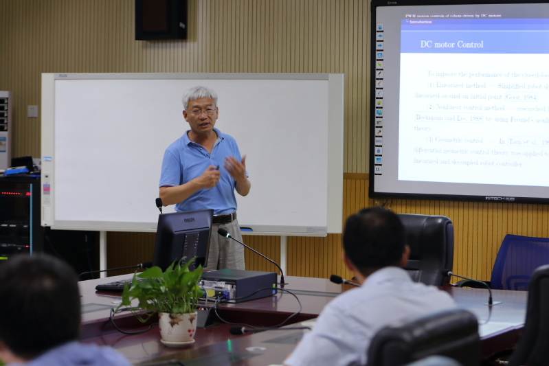 吴昭景作了题为《PWM controls of robots driven by DC motors》的学术报告。他首先阐述了脉宽调制控制和直流电机控制的背景,并介绍了拉格朗日方程和电机方程。然后,通过可测函数弱收敛的方法将连续函数逼近离散函数,给出了直流电机系统的控制方法,并对理论结果进行实验仿真。最后,对后续研究工作提出了展望。