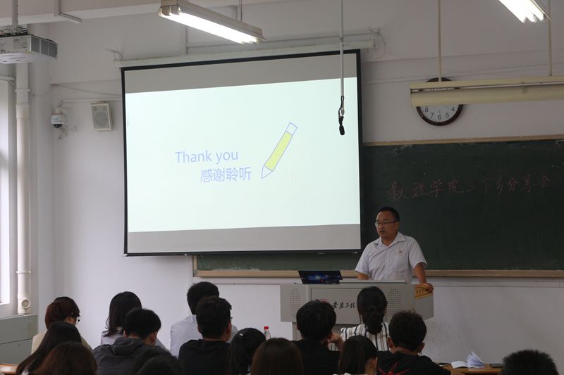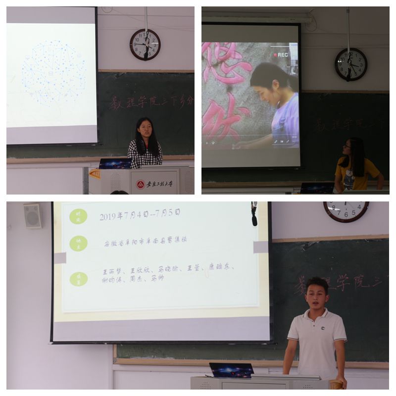 为深入学习贯彻习近平新时代中国特色社会主义思想和党的十九大精神,认真落实好习近平总书记给中国“互联网+”大学生创新创业大赛“青年红色筑梦之旅”大学生重要回信精神。2019年暑假,数理学院开展以“青春心向党,建功新时代”为主题的暑期社会实践活动,其中,学院组建了10支团队百余名同学奔赴各地,采用多种形式积极开展社会实践活动。9月4日下午2:30在4教104教室数理学院开展2019暑期“三下乡”社会实践分享活动,校团委副书记郭广春、数理学院学工队伍及数理学院17、18级学生参加此次活动。