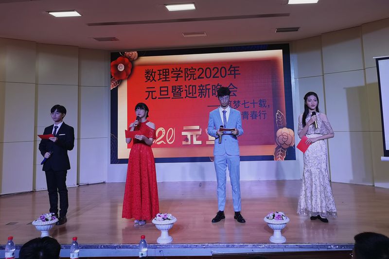 2月1日下午三点半,数理学院2020年元旦暨迎新晚会在学术报告厅顺利举办。数理学院党委副书记、校学生会主席团成员、人文学院学生会主席和数理学院200多名同学共赴了这场视听盛宴。