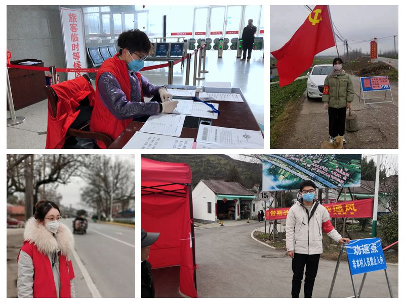 很多同学们在各自的家乡深入防疫第一线进行志愿服务,互联网金融191江嘉佳同学配合政府部门挨家挨户进行人员信息填写,统计182汪炜桀同学和金融中外162王海军同学在家乡高铁站对来往人员的通行卡点进行网络信息核查登记,统计183方钱燕同学和统计173郎峰同学在家乡界点处负责车辆通行及人员进出情况的记录,金融工程181武佳玮同学负责核对每位进出社区居民的通行证和身份证信息。他们都表示在特殊时期,能为社会服务,贡献出一份力量,是自己的责任,也是当代大学生的担当。