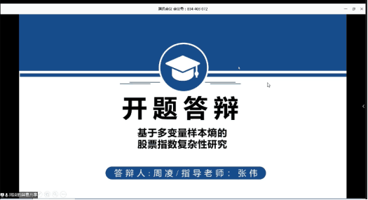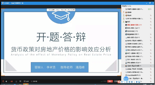 按照学校新型冠状病毒疫情期间“教师不停教、学生不停学”的要求,数理学院高度重视各项在线教学工作的实施与质量保障。3月14日,学院组织了2020届金融工程、金融工程(中外合作)、统计学以及金融工程(辅修)四个专业的学生开题工作。学院毕业论文指导老师与同学们一起按照毕业论文开题规范在线完成了本次毕业论文开题答辩工作。