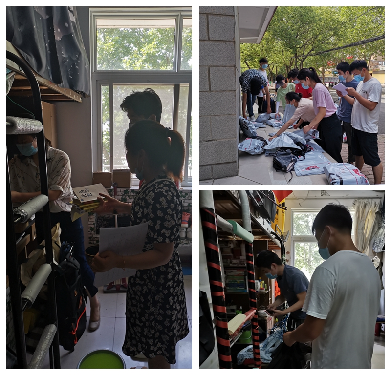 活动前期毕业班全体党员配合各年级辅导员通过班级qq群收集邮寄物品信息。6月4日早上九点开始,毕业生党员按照楼栋分配工作岗位,在宿管中心工作人员的协助和辅导员的带领下,毕业生党员们逐一打包物品装袋贴标签,对于电脑等贵重物品进行包装和标注保价,再对所有物件核对整理后送至快递点发放。直到晚上六点,共整理寄件110件。