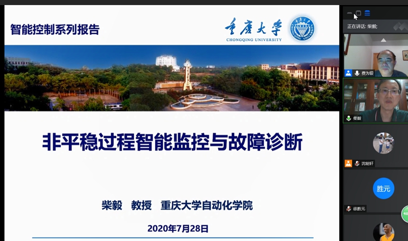 7月28日,柴毅教授做了题为《非平稳过程智能监控与故障诊断》的学术报告,他在介绍了研究背景和非平稳过程监测信号分析后,重点对基于监测数据的异常工况在线检测和数据驱动的非平稳过程智能故障诊断进行了详细的分析。
