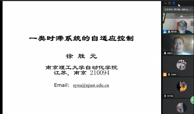 为开阔RayBetApp官网下载 青年老师和研究生的研究视野,增强对智能控制相关领域研究前沿问题及研究热点的认识,特邀请武汉科技大学柴利教授、北京大学喻俊志教授、清华大学周东华教授、上海交通大学李少远教授、北京理工大学夏元清教授、山东大学王光臣教授、重庆大学柴毅教授、南京理工大学徐胜元教授、南京航空航天大学姜斌教授、南京邮电大学岳东教授、中国科学技术大学康宇教授、华北电力大学刘向杰教授、广东工业大学鲁仁全教授和浙江大学陈积明教授以腾讯会议方式为数学、控制、计算机和人工智能等相关学科师生做了智能控制系列专题学术报告。报告会由副校长费为银教授主持。