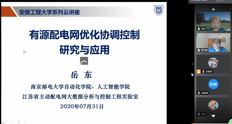岳东教授做了题为《有源配电网优化协调控制及应用》的学术报告,他首先对问题的研究背景及技术挑战和难点进行了介绍,随后分析了研究思路和系列的创新点,并对团队所取得的成果进行了介绍。