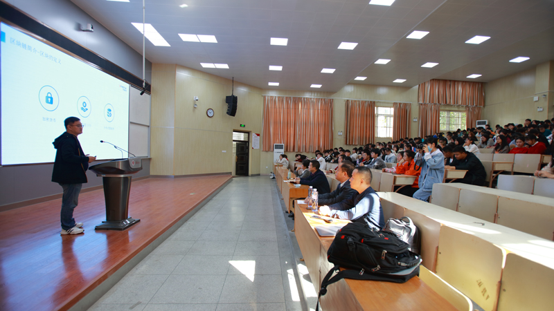 10月24日上午10点,旺链信息科技有限公司首席建构师、产业区块链研究院院长冯翔应邀在2教报告厅做了题为《什么是区块链》的学术报告。数理与金融学院互联网金融和金融工程全体低学生和部分教师参加了会议,报告会由数理与金融学院院长王传玉主持。