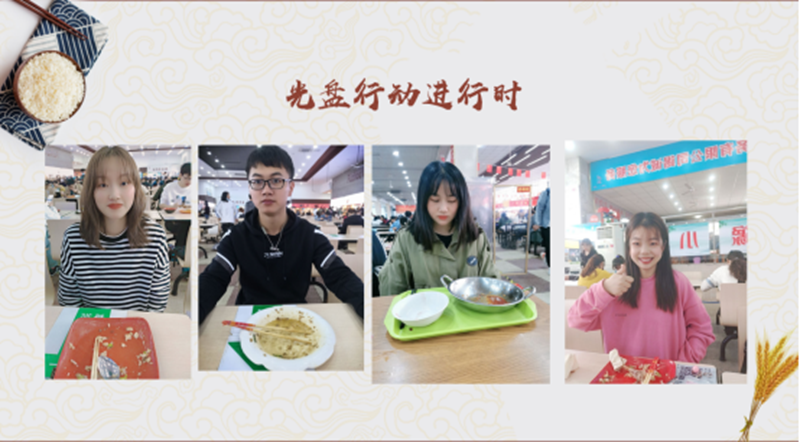互联网金融专业率先在数理与金融学院发起号召,向大家提出节约粮食,反对浪费的“四点建议”,即“量力而行”、“鼓励打包”、“制止浪费”、“点餐N-1”,发动同学们留下与“光盘”的合影,带动身边朋友一起“光盘行动”。同时,呼吁大家在光盘行动宣传海报上留下自己的签名与承诺,共同助力文明校园的建设。