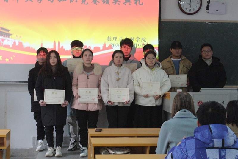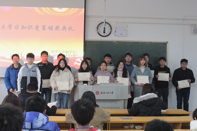 12月9日中午,由数理与金融学院团委举办的“青年大学习”知识竞赛颁奖仪式在4J109举行。学院团委书记苏燕南、辅导员汤建文和来自全校各学院的45名获奖同学参加了此次颁奖。