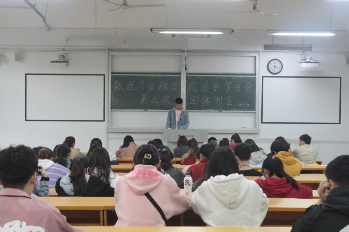3月31日下午数理与金融学院团委学生会于2J107召开学期第一次全体例会,团委学生会106名同学参加。