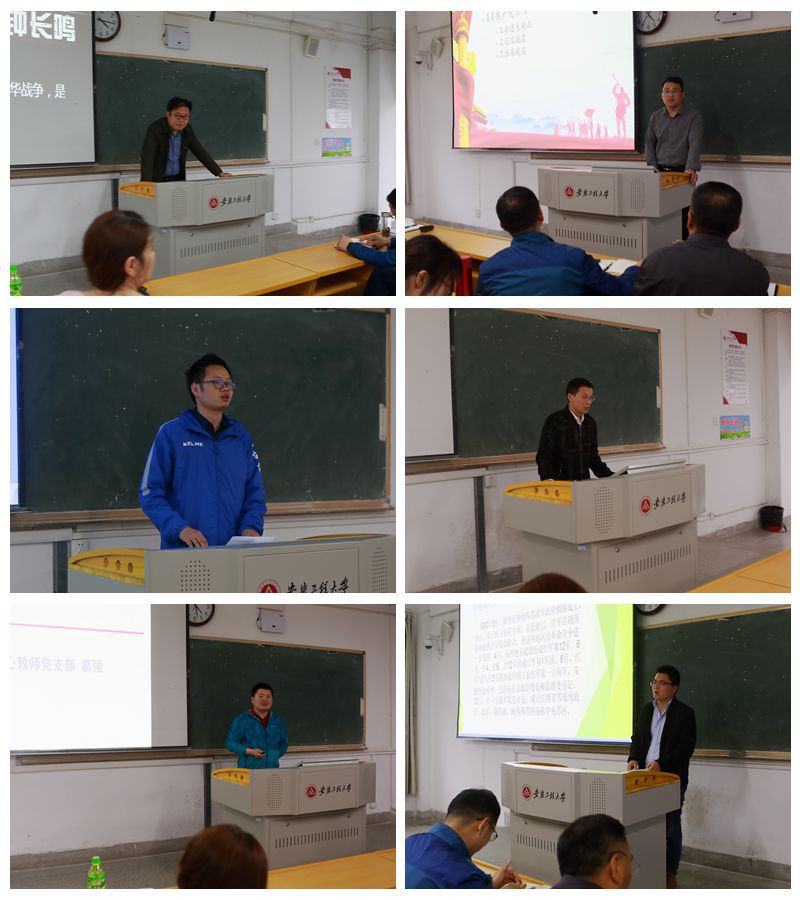 党委副书记王燕从为什么需要理论的指导、为什么最终选择马克思主义理论两个问题出发,给大家介绍了马克思主义在中国的传播,拉开了此次研讨交流会的序幕。五四运动和马克思主义在中国的传播、中国共产党的成立、国共合作、八七会议与三大起义、农村革命根据地创建、长征、遵义会议、《论持久战》、抗日战争、三大战役、渡江战役、新中国成立,学院党委理论学习中心组的12位老师PPT图文并茂,讲解深入浅出,带领同志们对重要历史人物和重大历史事件进行了回顾与学习。整场交流会由点到线、由线到面、由面到体系,立体多维地领略了党可歌可泣的伟大光辉战斗历程,贯穿其中的主线是党来自人民、依靠人民、为了人民的初心与使命,引人入胜、发人深省、引发强烈共鸣。