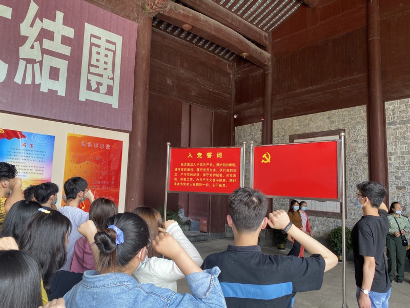 讲解员结合新四军大会堂旧址、新四军军部旧址及纪念馆里大量的图片资料和珍贵的文物史料,给同学们进行详细的讲解,还在纪念馆内安排学生聆听了微党课,深入系统地学习了新四军在康战争的战略部署、战斗历程和战绩战果,深刻地体会到将士们浴血奋战中淬炼出来的“新四军精神”!在新四军大会堂旧址内,支部组织新党员进行了入党宣誓、党员重温入党誓词,全体党员的铮铮誓言体现了“不忘初心,牢记使命”的坚强决心和坚定信念。最后,由统计182班的汪炜桀同学,带领全体党员齐唱《我的中国心》,在激扬的红歌声中圆满结束了此次红色教育基地参观学习的活动。
