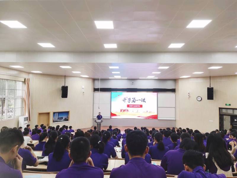 9月14日上午8点,数理与金融学院新生入学教育之“开学第一课”在2教报告厅精彩开讲。学院党政领导班子集体走上“开学第一课”的讲台,号召全体新生争做有理想、有追求、有初心的德智体美劳全面发展的时代新人。学院团委书记、新生辅导员以及全院270名大一新生聆听“开学第一课”。