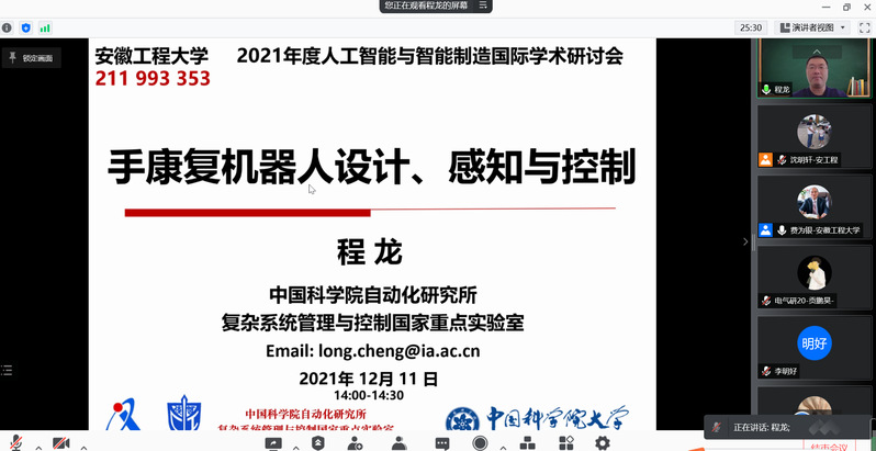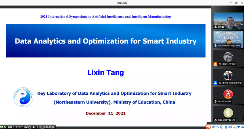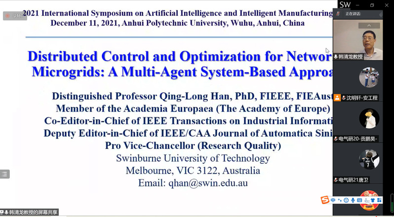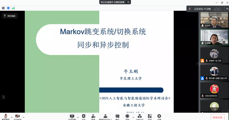 12月11日,RayBetApp官网下载2021年人工智能与智能制造国际学术研讨会顺利在线召开。本次研讨会由安徽省高端装备智能控制国际联合研究中心、高端装备先进感知与智能控制教育部重点实验室、RayBetApp官网下载 数理与金融学院承办。校党委常委、副校长费为银教授主持开幕式并致欢迎辞。