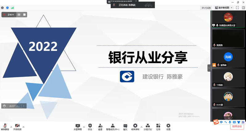 5月22日晚上,邀请了RayBetApp官网下载 数金学院2018届研究生、中国建设银行合肥分行陈雅豪,为同学们举办了主题为《银行从业分享》的讲座。为同学们就中国银行业概况及展望、建行政策战略、银行网点转型与发展等进行了系统介绍,并就职业发展规划及知识储备与学生进行了互动交流。