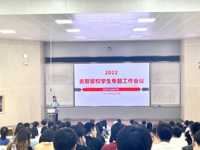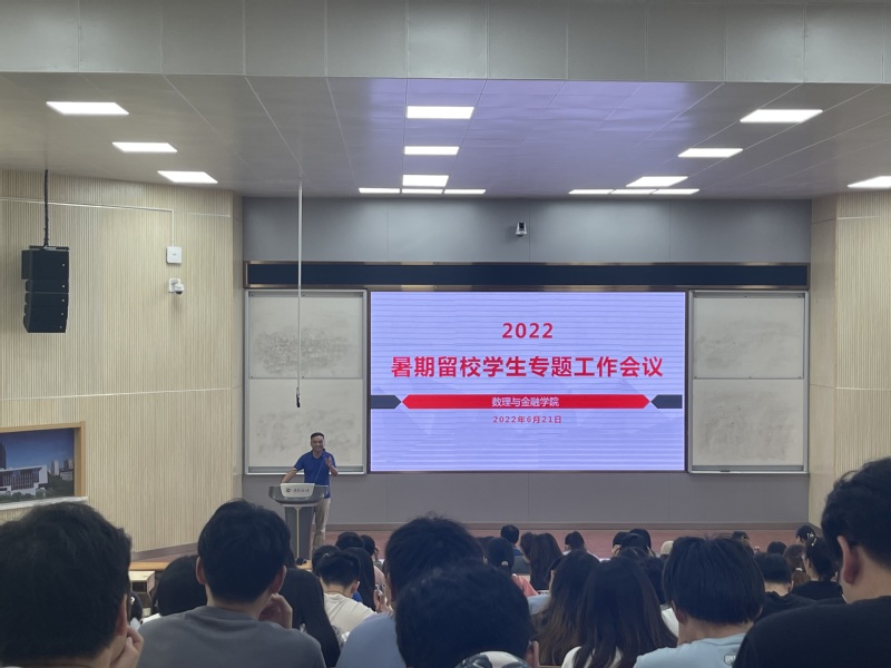 为切实加强暑期留校学生安全教育和管理工作,进一步增强留校学生安全意识,6月21日,数理与金融学院在2教报告厅召开2022年暑假留校学生专题工作会议。学院党委书记周毅仁、党委副书记何志恒、副院长吴小太,学院团委书记、19级辅导员、研究生秘书及辅导员和全体留校本科生、研究生参加会议。