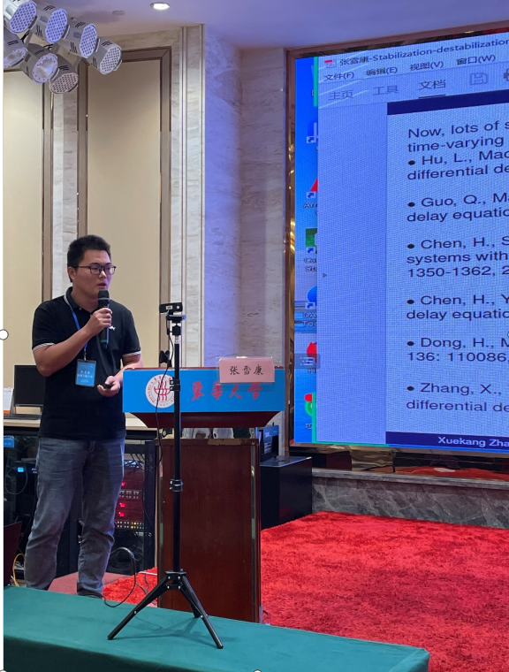 2022年8月1日至8月5日,由东华大学承办的非线性随机微分方程及其相关问题学术研讨会采用线上与线下结合方式在上海召开。参加大会的有中科科学院院士彭实戈,英国爱丁堡皇家科学院院士、纽约科学学会院士毛学荣等国内外高等院校和科研院所的专家学者及青年科研工作者、学生等300余人。我校数理与金融学院费为银教授,邓寿年教师、张雪康教师和研究生等一行11人应邀参加,其中邓寿年教师作了题为《Positivity-preserving truncated Euler-Maruyama method for generalised Ait-Sahalia-type interest model》报告,张雪康教师作了题为《Stabilization and destabilization of non-autonomous nonlinear stochastic differential delay equations》报告,两位教师的报告引起了同行的极大兴趣。