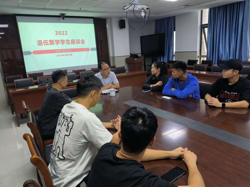 9月22日,为充分了解退伍复学学生的学习和生活等情况,更好地做好服务工作,学院召开退伍复学学生座谈会,学院党委副书记何志恒参加,学院征兵工作联络人汤建文主持会议。