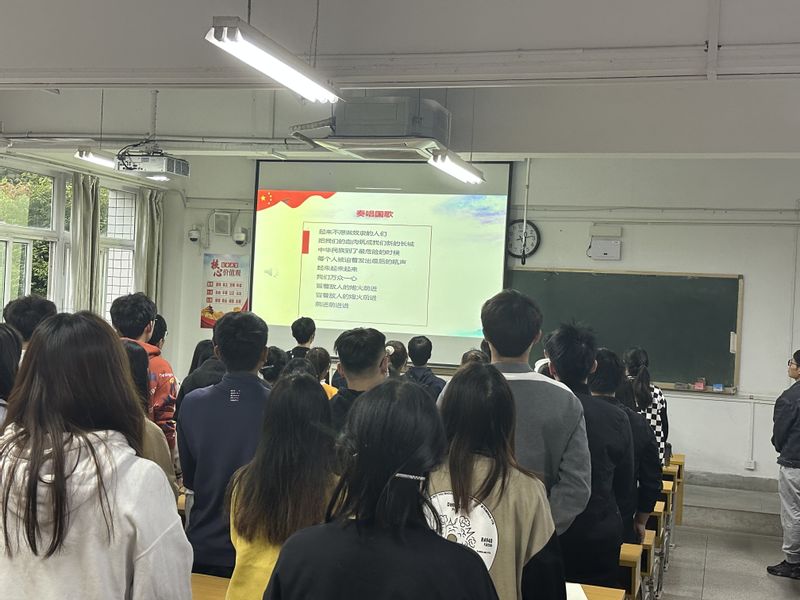 全体起立,奏唱国歌,培训班学员目光坚定,以洪亮的声音唱响国歌,表达对党和国家的无限深情。