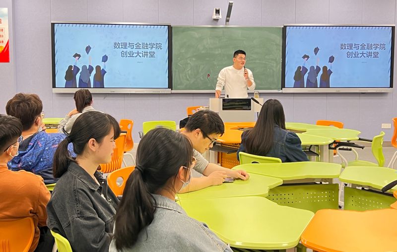 为引导学生树立正确的就业观,择业观,合理规划好大学生活,11月12日下午,数理与金融学院在4教112举办校友创业大讲堂活动。人文学院2013级校友方杰受邀作为此次创业大讲堂主讲人,约50名学生参与活动。