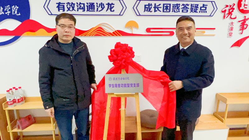 学生宿舍功能型党支部成立活动在男生宿舍11号楼学院“评理说事大课堂”举行,学院领导为学生宿舍功能性党支部授牌。