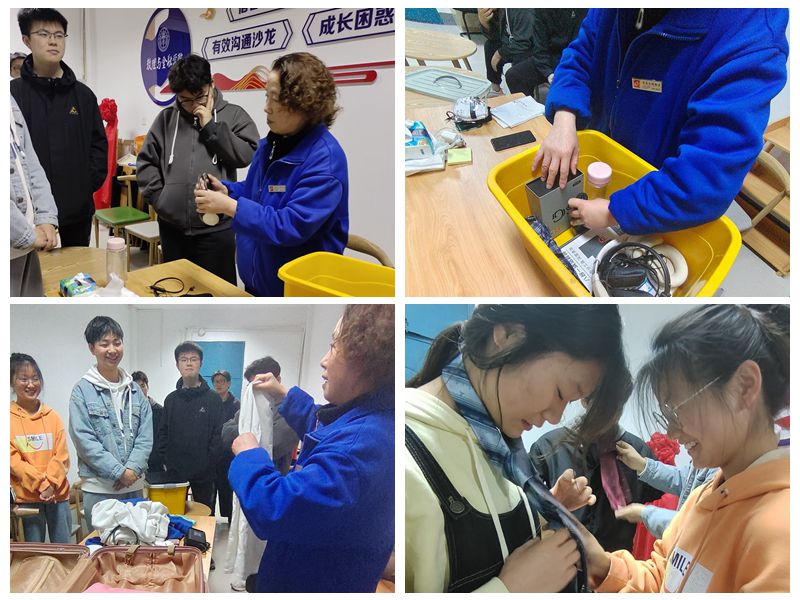 小课堂上,宿管阿姨向同学们展示了收纳箱的多种使用方法,教大家如何通过生活用品的收纳整理,使得宿舍整体看起来明亮通透。除此之外,阿姨还贴心地指导同学们如何整理行李箱,将有限的空间充分利用。在宿管阿姨逐一指导与耐心解答下,在场的同学跃跃欲试,气氛融洽活跃,效果显著。对于如何系领带,阿姨展示了领带的多种系法,同学们轮流进行实践,受益匪浅。在场的同学为宿管阿姨的耐心讲述鼓掌感谢,表示后面会认真整理宿舍,将宿舍内的物品进行归类、整理,将生活物品有序摆放整齐,有效利用宿舍空间,常态化保持宿舍干净整洁。