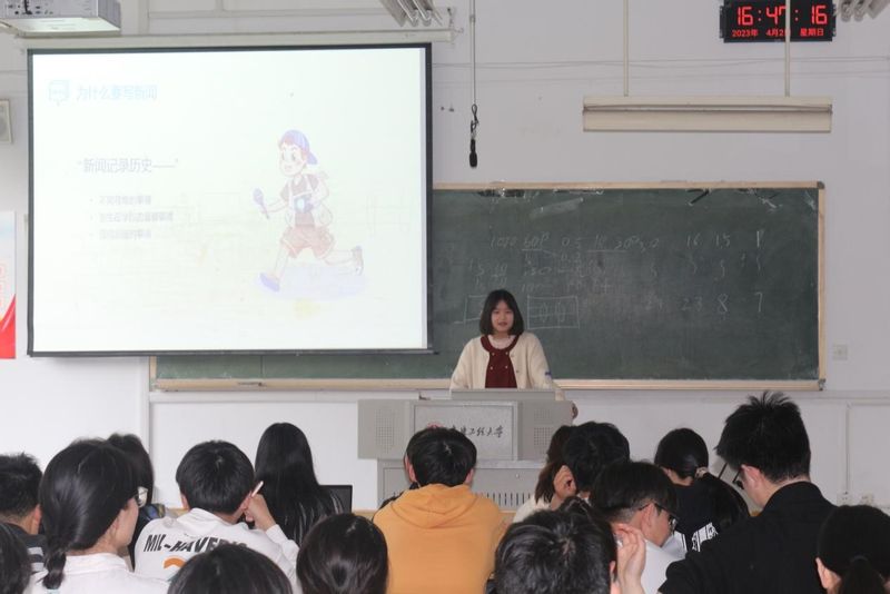 张犇老师围绕新闻的本质、新闻稿的写法、稿件的规范等内容,向同学们讲解了新闻稿撰写的要点。她鼓励大家平时多关注现实,多关注身边的人和事,多看新闻,学习他人是如何写作,在实践中锻炼自己,提高自己的写作能力。