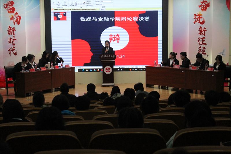 为了丰富同学们课余文化生活,提高思辨能力,培养团队合作精神。4月24日晚,数理与金融学院在学术报告厅举办2023年本科生辩论赛决赛。建筑工程师学院团委书记苏伟刚、体育学院团委书记范同军、应化211班李梦丽和物联网211班熊晨洋担任评委,金融221班胡凌宇同学担任主持人。