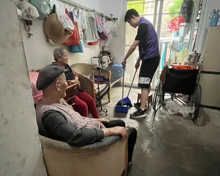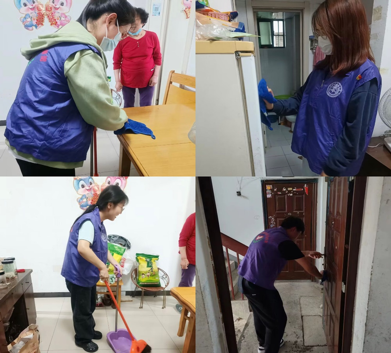 在社区工作人员的带领下,志愿者来到了三户残疾人的家中开展志愿活动。志愿者们用抹布擦拭桌子,用心整理房间,带走厨余垃圾,还老人们一个明亮整洁的居住环境。随行的口腔医院医生给三户残疾老人测量血压、检查牙齿,确保老人的身体健康。志愿者们陪同老年人聊天唠家常,给予陪伴、舒缓心情,受到了社区居民的一致好评。