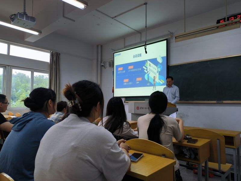 申万宏源招聘方以公司的宣传片开场,为同学们详细介绍了中国证券市场的发展历史、申万宏源公司的概况以及新员工入职后的培养、发展、薪资待遇等情况,邀请了在公司任职的我校05届毕业生现场与同学们进行交流、答疑解惑。