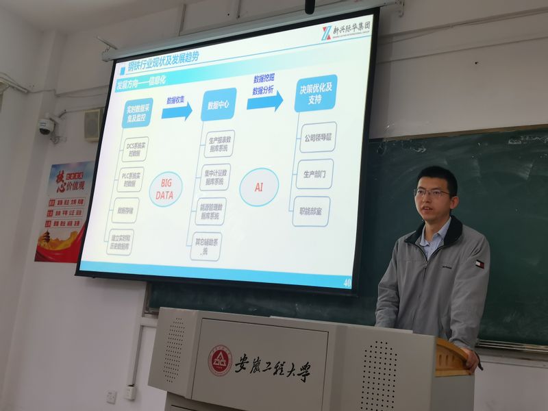 魏瑞瑞主要从新兴铸管的发展历程、企业概况、获得荣誉、主要产品、生产流程的智能化信息化以及当前行业发展现状和趋势等为我院师生作了一场精彩的报告。在报告中他指出,通过实时数据采集和监控,企业可以更好地掌握生产过程中的各个环节,并及时进行调整和优化。这不仅可以提高生产效率,还可以降低生产成本,提升产品质量。他还提到,信息化的发展需要依靠数据挖掘、数据分析、数学建模等专业知识,这与我们学院的专业背景非常契合。在报告的最后,魏瑞瑞对当前行业发展现状和趋势进行了分析。他指出,新兴铸管正处于快速发展的阶段,市场需求不断增加。他鼓励数理与金融学院的学生在毕业后考虑进入新兴铸管工作,为行业的发展做出贡献。他希望我们能够在以后的时间里有更深入的合作,推动学院和新兴铸管的共同发展。