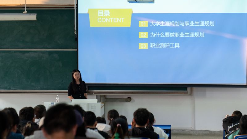 程安琪从大学生涯规划与职业规划、为什么要职业规划、职业测评三个方面向同学们进行介绍,结合参加省级职业规划大赛获得金奖的经历,勉励同学们“对内找准自己的优势和劣势,对外发现机会和挑战”,更全面地制定发展战略、计划和策略,丰富自身的大学生涯规划设计,努力付诸实施。