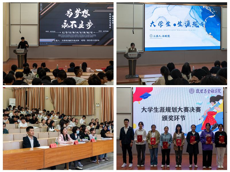 为进一步推深做实“三全六专”育人实践工作,引导2023级新生合理规划大学生涯,绘好未来人生蓝图,11月2日,数理与金融学院2023年大学生涯规划大赛决赛于2J报告厅顺利举行。马克思主义学院季雨亭、李梅景,数理与金融学院赵颖担任决赛评委,200余名同学现场观摩比赛。