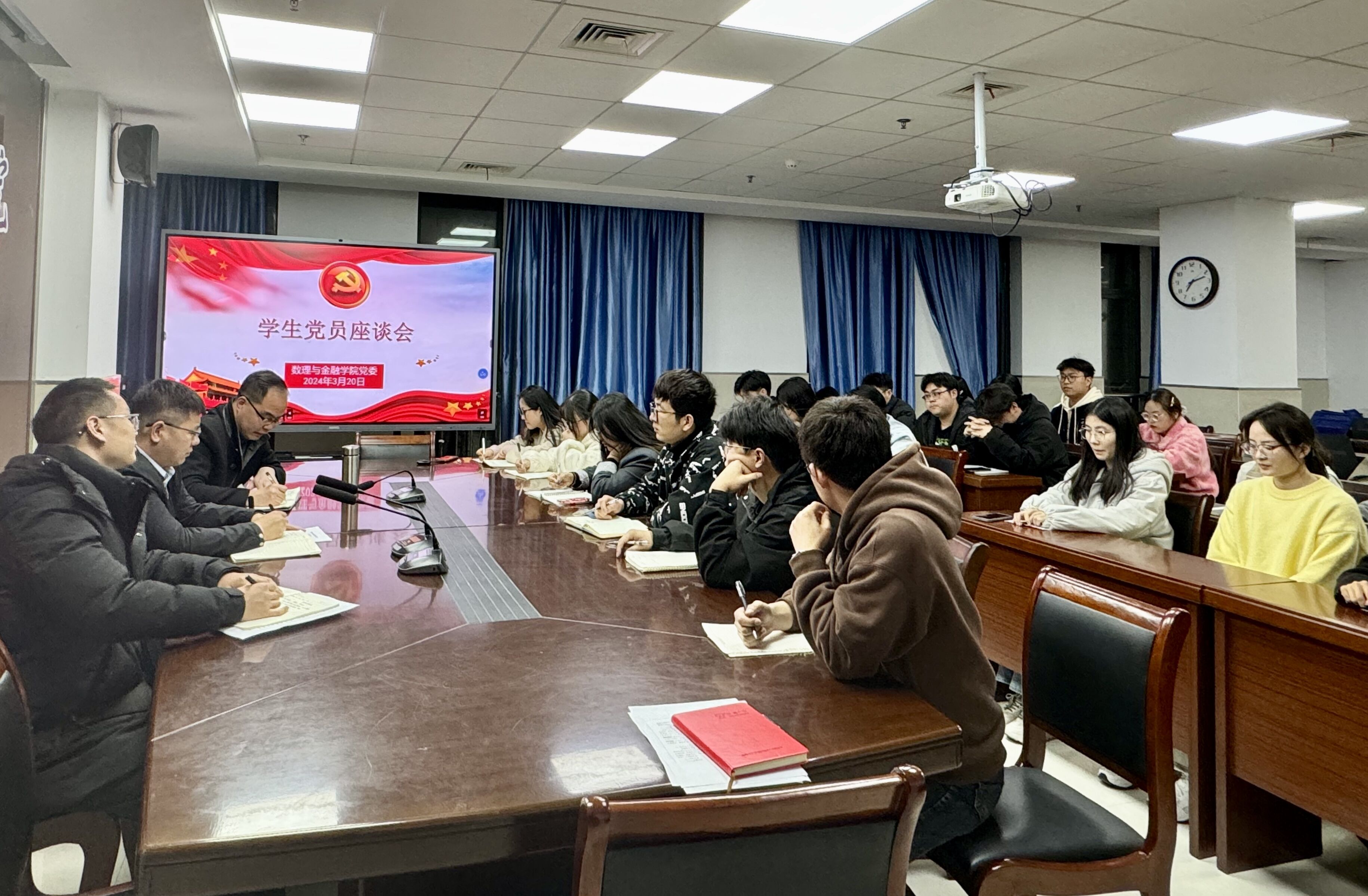 3月20日,数理与金融学院党委召开学生党员代表座谈会,学院党委书记林煦东、党委副书记何志恒、副院长张培雨以及各学生党支部党员代表参加了座谈会。座谈会由林煦东主持。