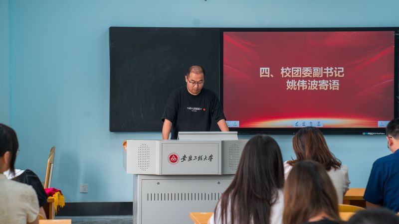 姚伟波代表校团委向新团员表示祝贺,勉励他们要勤奋学习,不断充实自己;要严于律己,做到自重、自省、自警、自勉;要勇于实践,增强社会责任感,在亲身锻炼中增强家国情怀。希望他们能够牢记团组织的嘱托和期望,以更加饱满的热情和更加坚定的信念投身到共青团事业中去,为实现中华民族伟大复兴的中国梦贡献青春力量!