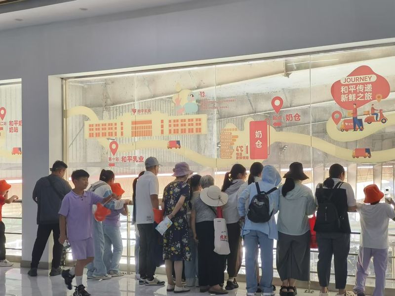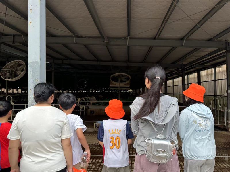 在蚌埠市和平牧场,团队成员与牧场工作人员进行深入交流,了解牧场的运营机制和奶牛养殖知识。负责人介绍了牧场的历史与养殖理念,详细讲解了奶牛的生长周期和养殖过程。通过交流,团队成员对牧场运营和劳动教育有了直观认知。随后,团队成员深入牧场,实地观察奶牛的生活环境,亲身体验挤奶,感受从饲养到生产过程中的每一环节。在技术人员的指导下,大家不仅学习了养殖知识,更在劳动中体验到了科技与实践的结合,对劳动的价值有了深刻理解。