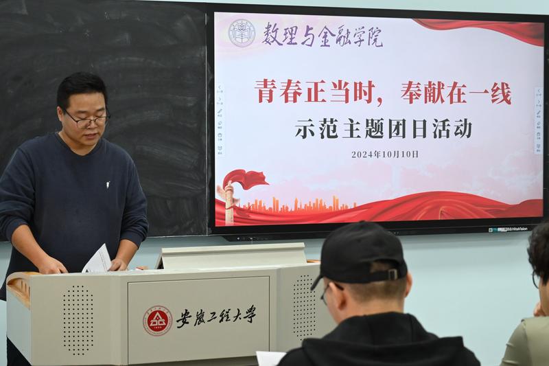 为庆祝中华人民共和国成立75周年,进一步引导广大团员青年坚定理想信念,数理与金融学院于10月10日在4教406智慧教室开展“青春正当时·奉献在一线”示范主题团日活动,24级辅导员汤建文及学生会功能型团支部参加活动。