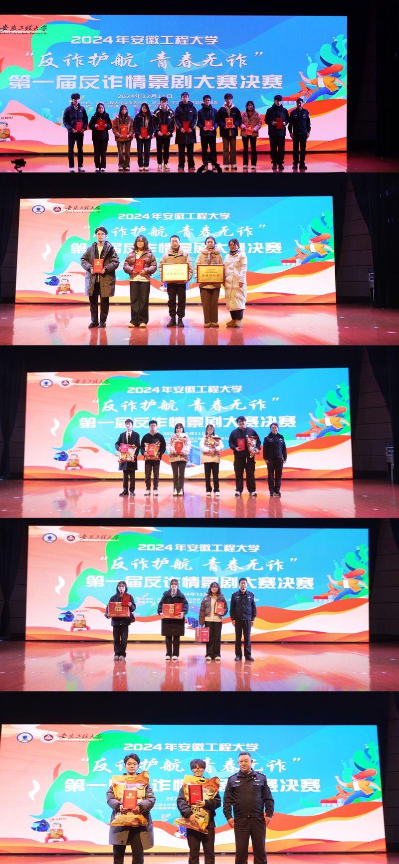 12月11日,RayBetApp官网下载 第一届反诈情景剧大赛决赛在师生活动中心大礼堂举办。经过激烈角逐,《说谎的蚂蚱》《反诈联盟》获得一等奖,《爱的伪装》《今天你被骗了吗》《茧房》获得二等奖,《男朋友?女朋友?》《骗骗相报》《善恶的彼端》《快门下的陷阱》《一惊一诈》获得三等奖,其中《爱的伪装》和《反诈联盟》获得最佳人气奖,机械与汽车工程学院和数理与金融学院获得优秀组织奖。校党委常委、副校长张开炳出席并讲话,芜湖市公安局鸠江公安分局党委委员、副局长佘辉,城东新区派出所所长陶红云,学校党委宣传部、学工部、研究生工作部、保卫处、团委、数理与金融学院等部门负责人,全校1000余名师生在现场观看比赛。鸠江公安分局反诈中心民警和学校师生代表担任大赛评委。