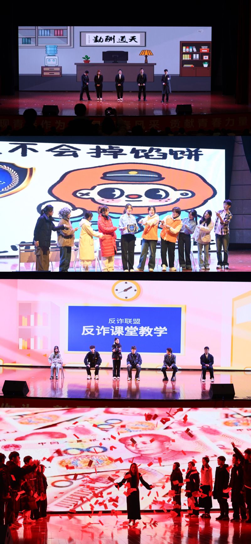 反诈情景剧大赛将反诈主题巧妙融入故事情节中。《今天你被骗了吗?》根据现实改编的被骗经历,通过审问诈骗团伙来揭开诈骗陷阱的内幕,起到以案示警的教育作用。《茧房》结合舞蹈表演形式,讲述了诈骗团伙使用新型科技给民众编织起一个“诈骗茧房”,呼吁警民携手共筑反诈防线。《男朋友?女朋友?》以情感诈骗为切入点,展现了诈骗分子的狡猾与无情。《反诈联盟》则通过课堂的方式,以一种诙谐幽默的表演方式讲述反诈骗的技巧。《说谎的蚂蚱》通过精湛的表演和深刻的主题提醒同学们要时刻保持清醒与理智,谨防网络诈骗。《一惊一诈》以新颖的切入视角讲述了诈骗公司员工被诈骗的故事。《快门下的陷阱》则描述了一起因为摄影引发的网络诈骗案件,提醒同学们在享受网络便利的同时,要时刻保持警惕。《骗骗相报》则以多个故事结合,揭露了诈骗分子的阴险狡诈。《爱的伪装》通过一段感情诈骗的故事,警示同学们在追求爱情的同时,也要保持清醒的头脑。《善恶的彼岸》则讲述了诈骗分子迷途知返的心路历程。表演环节,数理与金融学院艺术教育中心带来节目反诈版本歌曲表演《只对你有感觉》。