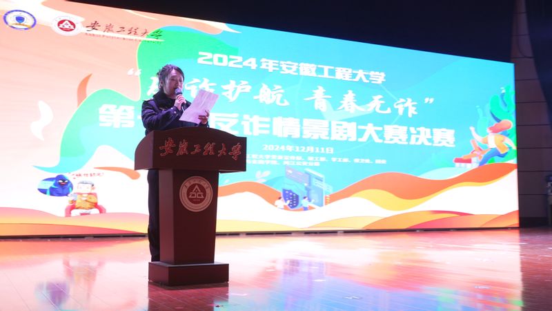 鸠江公安分局姚璐璐对比赛进行点评。她高度评价了十支队伍的精彩表现,肯定了举办反诈情景剧大赛的重要意义,希望同学们能够继续加强防诈知识的学习和宣传,提高反诈能力,共同营造一个安全、和谐、美好的校园环境。