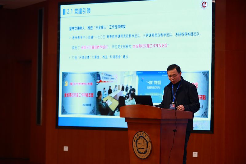 吴小太在大会上作党建引领数学学科建设专题交流报告。他系统介绍了我校数学学科的发展历程,重点阐述了学院在师资队伍建设、平台团队打造、人才培养体系构建以及学科整体发展等方面的重要举措与阶段性成效。吴小太强调,学院始终坚持将党的建设摆在首位,以高质量党建引领事业高质量发展,为数学学科实现内涵提升与高质量发展提供了坚强的政治保障和组织支撑。