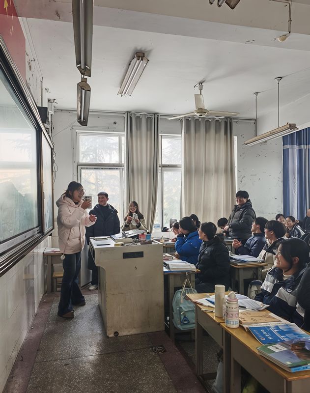 活动筹备阶段,在指导老师的帮助下,团队成员深挖校情,系统梳理办学特色、优势学科、招生政策等核心信息;积极与相关高中老师沟通,洞察学情,精准把握学生关注点。在此基础上,团队成员融合官方数据、实景影像与学长成长故事,制作了宣讲材料,力求在传递客观信息的同时,注入情感温度,使大学形象更加真实可感。“我们准备了三个版本的PPT,针对不同学生设计差异化内容。”队长王澜同学介绍道。