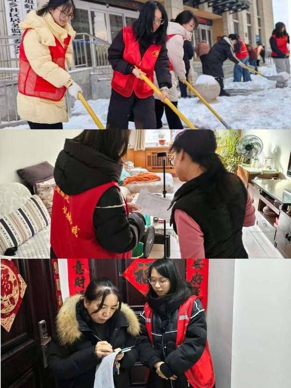 金融231班梁筱筱寒假期间化身宿州泗县虹乡社区的 “志愿红”,担任社区团支部助理。寒潮来袭时,她主动参与扫雪除冰,为居民出行保驾护航;为提升社区居民应急能力,她协助开展红十字急救知识宣传;春节即将来临,她忙碌于年货分发一线,将温暖与关怀送到群众手中,用热情与行动点亮社区冬日温情。金融252班米梓铱则扎根河北省保定市清苑区西城社区,主动协助开展入户问卷调查工作,在与居民的耐心沟通中倾听民意、收集诉求,既锻炼了沟通表达与实践操作能力,更以实际行动回应家乡需求,践行青年责任。