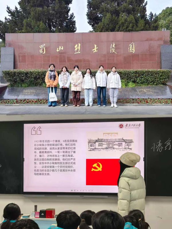 统计243班罗敏娜等同学怀着崇敬之心,走进安徽省合肥市蜀山烈士陵园、革命纪念馆与红色故居。在庄严肃穆的烈士纪念碑前,他们敬献鲜花、垂首默哀,在泛黄的史料文物中追寻革命足迹,在感人至深的英雄故事中感悟初心使命。金融253班方斐敏则化身 “红色宣讲员”,将挖掘整理的家乡红色故事带回寿县一中,以一场生动真挚的主题宣讲,把寿县的革命历史与英雄事迹娓娓道来,让红色火种在学弟学妹心中扎根发芽,推动红色基因在青年一代中赓续传承。