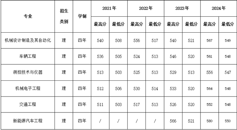 机械与汽车工程学院2021年-2024年省内各专业录取分数线