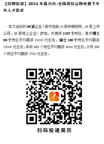 【招聘信息】2024年嘉兴市-全国高校云聘会暨下半年人才需求