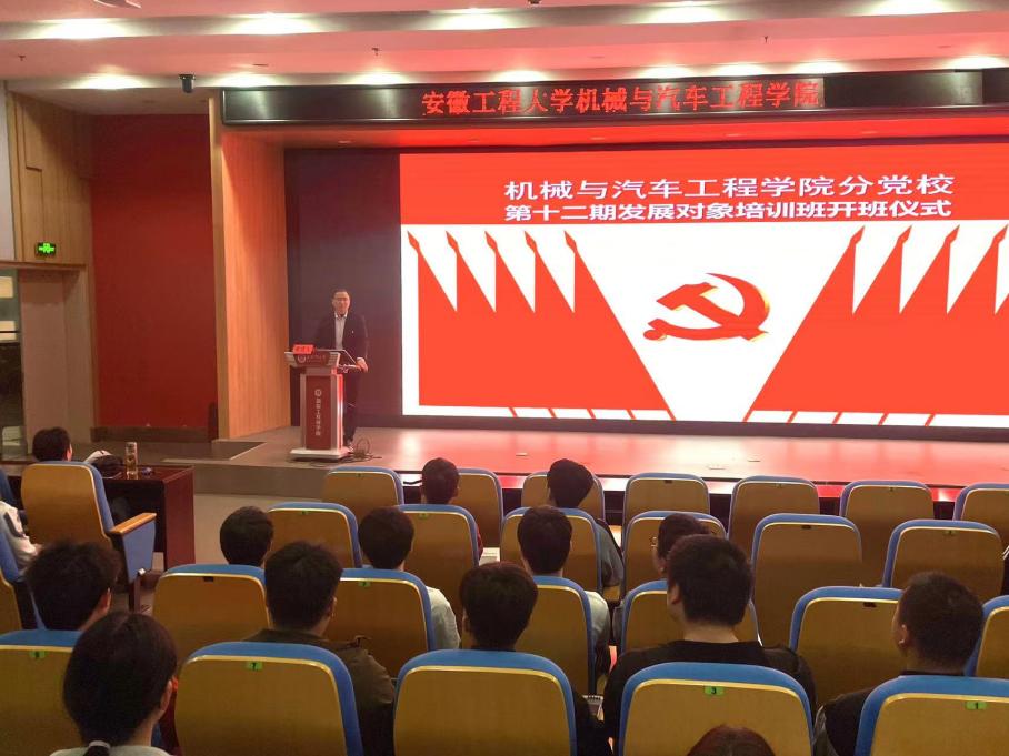 为做好党员发展与管理工作,锤炼党员党性修养,11月13日,机械与汽车工程学院第十二期发展对象培训班开班典礼在国际工程师学院校区赤铸报告厅举行。学院党委副书记秦广虎、培训班班主任孙志鹏和全体学员出席。开班典礼由孙志鹏主持。