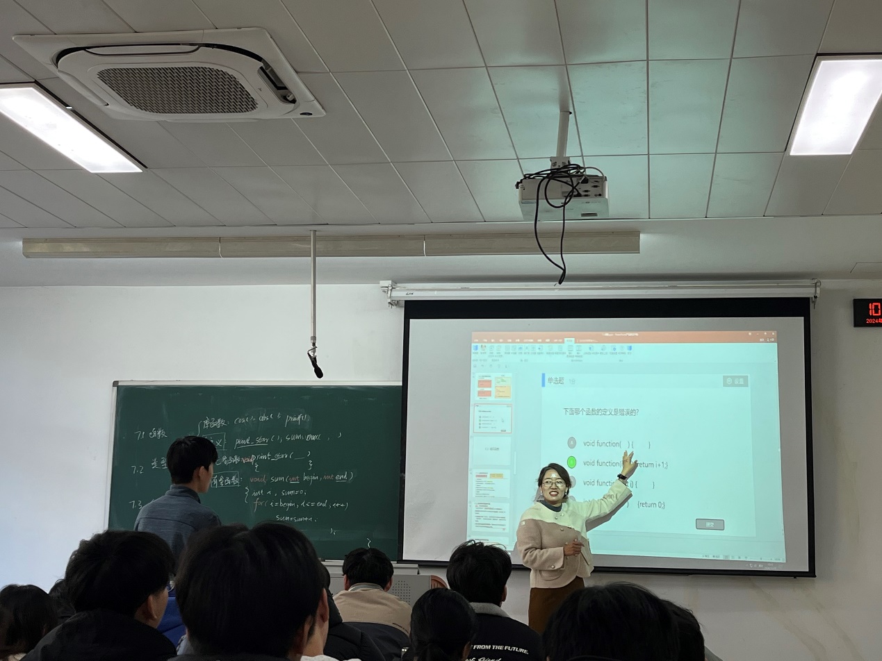 本次示范教学由张季琴老师主讲,讲授内容为《计算机程序设计基础》课程第七章用函数实现模块化设计。张老师从实际编程问题出发,引入“函数”概念,深入浅出的阐述了学习“函数”的必要性和重要性。通过实例详细讲解了函数的定义与调用方法,并通过雨课堂平台设置随堂问题,及时了解学生对知识的掌握情况,并提供即时反馈与讲解,有效促进了师生间的互动。